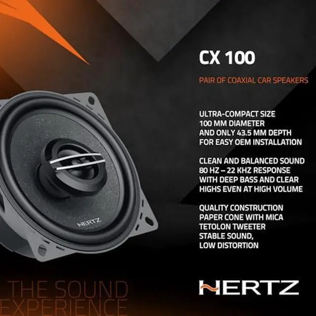 Coaxial speakers present a major design challenge due to the critical nature of their acoustic performance. They are installed in an OEM position that is often inconvenient for playback. For this reason, great technical efforts have been made to achieve high performance that have been addressed promptly by our R&D team. The CX 100 CENTO two-way coaxial cables feature the new 24mm Tetolon dome tweeter that delivers a more musical and detailed sound compared to conventional plastic materials. The dispersion has been optimised for off-axis hearing. The SPP-M cone (Semi Pressed Paper-Mica) provides excellent acoustic and damping properties.
