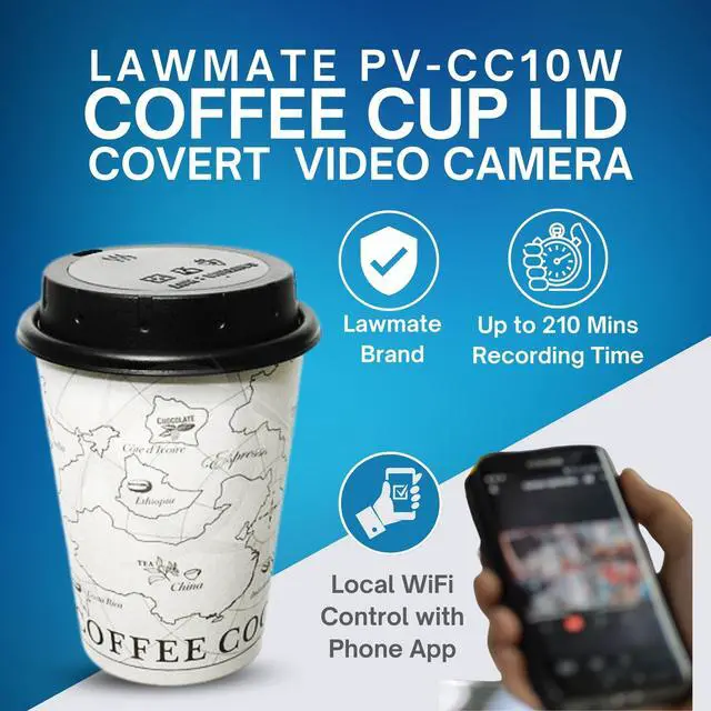 The new generation PV-CC10W is a high end high resolution covert video recording studio built into a coffee cup lid! Just order a cup of coffee or use standard coffee cups, pop the lid on the cup and you are ready to walk around and record all the 1080P high resolution covert video you need! The camera lens is highly concealed and ideal for both indoor and outdoor surveillance recording. You can record covert video as far as your eyes can see while appearing to be minding your own business sipping on your coffee. This amazing covert video recording studio records to a micro SD card and supports up to 32GB of video.