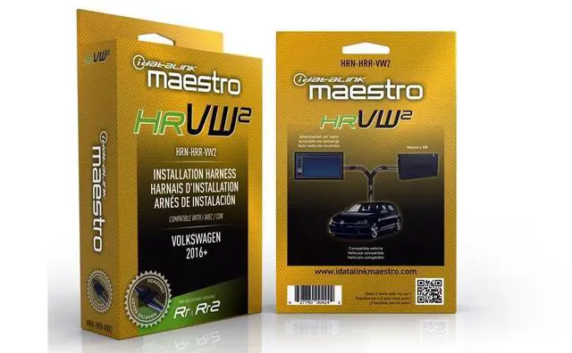 Plug-and-play harness designed for select Volkswagen vehicles - Connect an iDatalink-ready car stereo and retain steering wheel controls in select 2015-23 Volkswagen vehicles (ADS-MRR or ADS-MRR2 module also required) Sold separately. ^^ Simplifies installation of the Maestro RR or MRR2 module in compatible applications - Radio side of the harness features a universal connector - retains the use of your steering wheel audio controls - retains factory backup camera and allows installation of a second camera (receiver must have 2 camera inputs) ^^ Universal connector can be used with Maestro Head unit adapters for a plug-and-play solution - Option to remove the universal connector for conventional connections - displays engine performance data and other vehicle data on touchscreen - retains multi-function display, factory amplifier and subwoofer, and aux input ^^