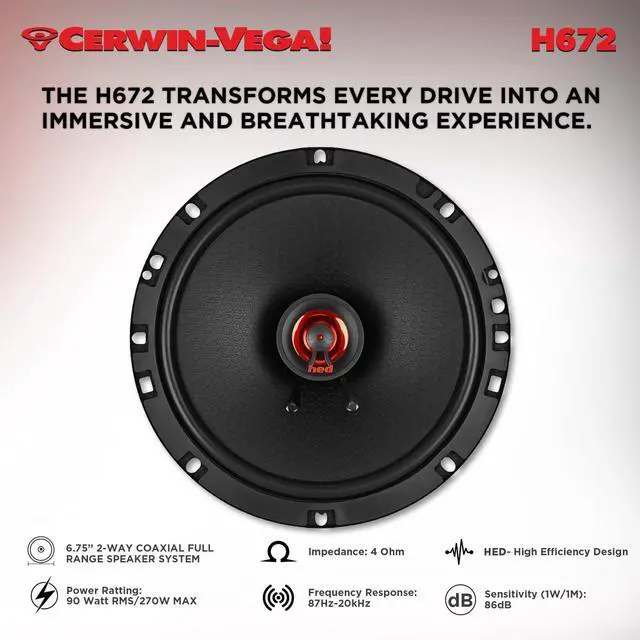 6.75 Woofer & 1 PEI Tweeter A 2-way coaxial system that delivers full-range sound with precise bass, clear mids, and sparkling highs. ^^ Dynamically Balanced 1 PEI Tweeter Delivers crisp, distortion-free highs, enhancing overall clarity and sound precision. ^^ Integrated Crossover with Tweeter Protection Smoothens frequency transitions and prevents distortion, ensuring clear audio at all volumes. ^^ Powder-Coated, Rigid Stamped Steel Basket Reduces vibrations and distortion, ensuring stable and accurate sound reproduction. ^^ Sold in Pairs Perfect for creating a balanced, high-quality sound system in your vehicle.