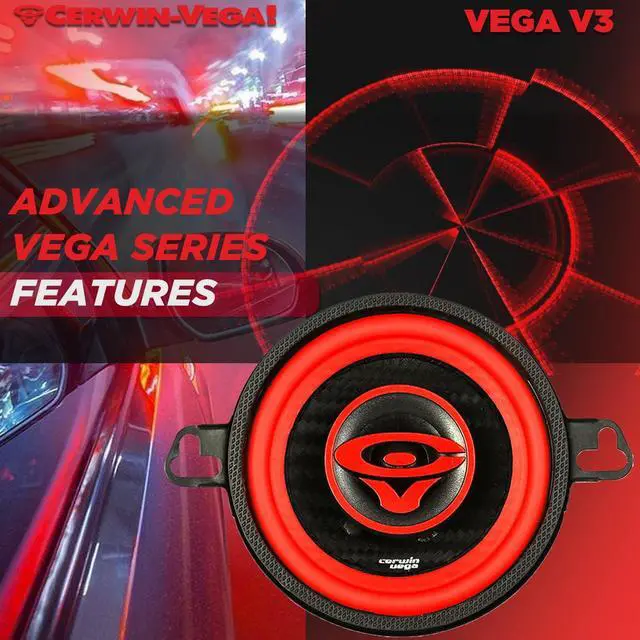 Sleek Black & Red Aesthetic: With the trademark VEGA red surround, everyone will know you upgraded to great sound even before they get to listen to them. Built with Cerwin-Vega quality, the VEGA series is a great compliment to any vehicle where you want studio-quality sound.