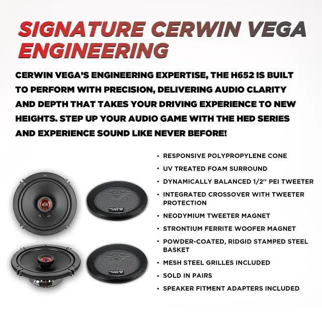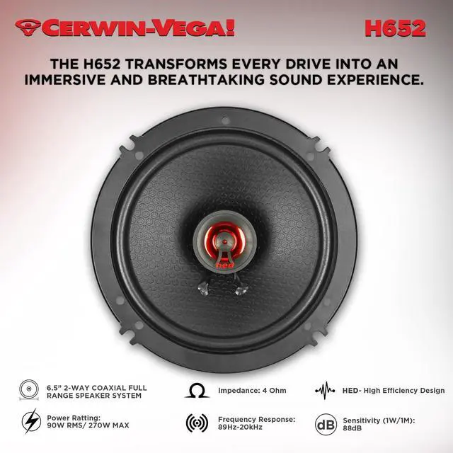 6.5 Woofer & 1 PEI Tweeter A 2-way coaxial system engineered to deliver full-range audio with precise bass, rich mids, and clear, bright treble. ^^ Responsive Polypropylene Cone Provides deep bass and smooth midrange frequencies for accurate sound reproduction. ^^ UV-Treated Foam Surround Ensures long-lasting durability and performance in a variety of conditions. ^^ Dynamically Balanced 1 PEI Tweeter Delivers clear, natural high frequencies, powered by a neodymium magnet for superior efficiency. ^^ Integrated Crossover with Tweeter Protection Smoothens frequency transitions and protects the tweeter from distortion even at higher volumes.
