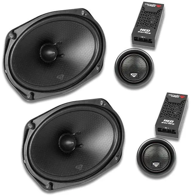 6X9 Woofer & 1 PEI Tweeter A 2-way component system that offers powerful bass, smooth midrange, and bright, detailed highs for a complete sound experience. ^^ Dynamically Balanced 1 PEI Tweeter Delivers bright, distortion-free highs with excellent clarity, ensuring top-tier high-frequency performance. ^^ Integrated Crossover with Tweeter Protection Guarantees smooth frequency transitions and protects the tweeter from distortion, even at high volumes. ^^ Sold in Pairs Perfect for creating or upgrading a high-performance component-based audio system in your vehicle. ^^ The H69C is perfect for audio enthusiasts looking for premium sound reproduction with full-range coverage.