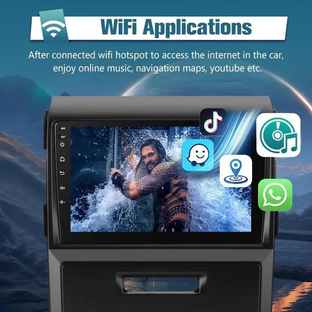 Applicable Car ModelsFor Ford F150 2009 2010 2011 2012, this Android head unit is designed with Android system and 2GB RAM+32GB ROM, 9 inch HD 2.5D touchscreen brings you a stunning visual and audio effect.: - / // /- (-) ^^ Bluetooth 5.0 FeaturesThis unit for 2011 ford f150 radio stream your favorite tunes, make calls hands-free, utilize voice-commands, and enjoy wireless control. The built-in microphone picks up your voice and your car speakers let you hear the person on the other side. ^^ Built-in GPS and Wifi ModuleFor f150 radio when connect to WiFi, you will upgrade your drive with our car display's online map - real-time data, online and offline maps, precise directions, customized routes etc. Also support to download any APP you need. Even without an internet connection, you can still use the map and GPS to navigate yourself. ^^ Steering Wheel ControlEffortlessly navigate through your media and apps with your car display that syncs flawlessly with your steering wheel controls. You could change the music, volume more easily when your steering wheel. And it also makes your driving safer. ^^ Wireless CarPlay & Android AutoFor Ford F150 head unit carplay get set for a seamless drive with our central display after paired bluetooth, integrated with CarPlay and Android Auto, providing intelligent navigation, easy controls, and a chic design to boost your on-the-road experience.