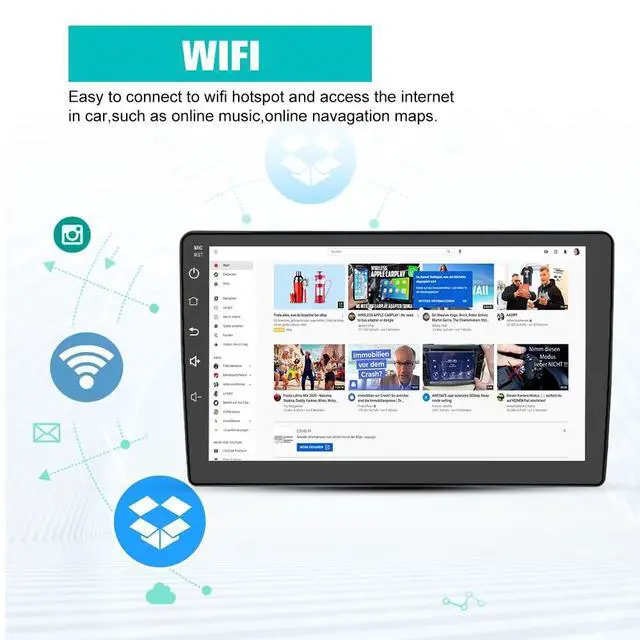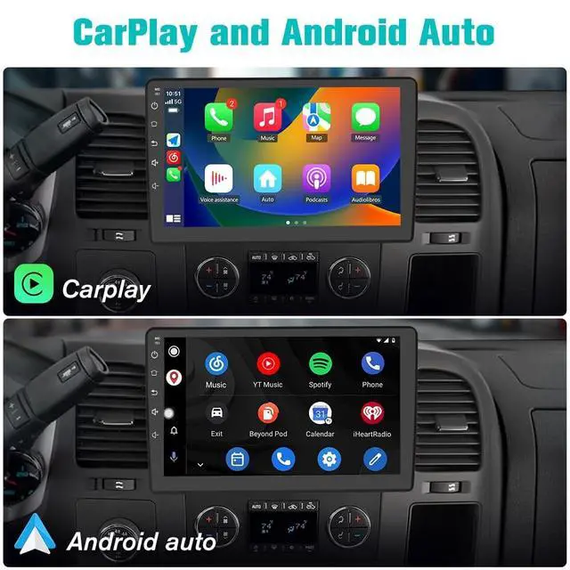 ^^ Wireless CarPlay & Android AutoA smart way to use your phone in the car, simply connect your iPhone/Android phone to the Android car radio via bluetooth or USB Cable. Use smart voice assistant or touch the display, you can get directions, make calls, send and receive messages, and enjoy music etc. A smarter, safer and more fun way to use your phone in the car, and keep you stay focused, connected and entertained. ^^ Ultra HD 1280*720 Display The 1280*720 resolution screen provides stunning clarity and suitabale brightness, making it easy to see under direct sunlight.