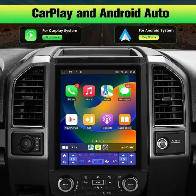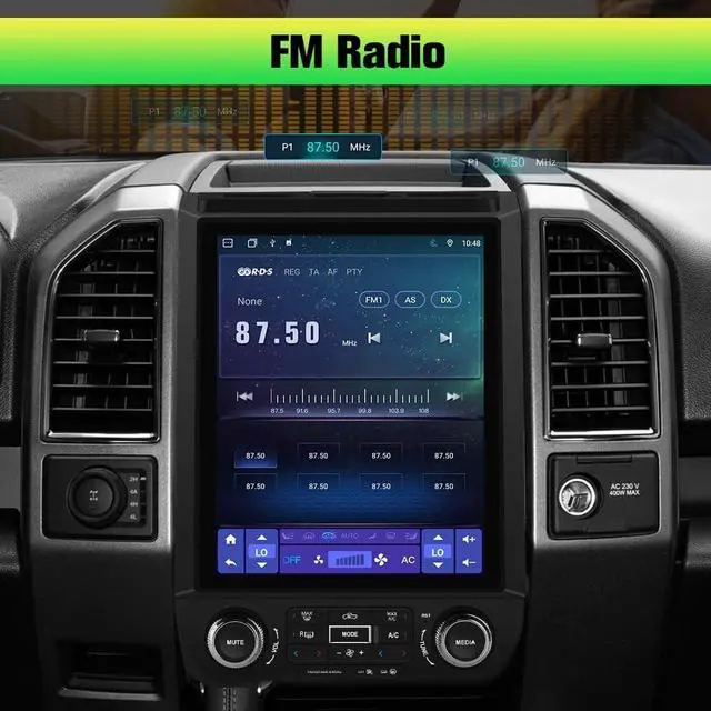 A smarter, safer and more fun way to use your phone in the car, and keep you stay focused, connected and entertained. ^^ 12.1 Inch Touch Screen & Split Screen functionTouch screen with 1024*768 high resolution, support 1080P video. The 12.1 -inch IPS display provides you with true-to-life colors from any angle. Support split-screen function, you can enjoy both interfaces on the same screen at the same time, bringing you a pleasant driving journey. ^^ FM AM Radio & DSPFor F150 radio built-in microphone and external microphone. Connect the FM receiving antenna in the package to listen to real-time traffic, news broadcasts and weather forecasts. Built-in DSP, you can adjust to any music sound mode you like for a more immersive sound effect.