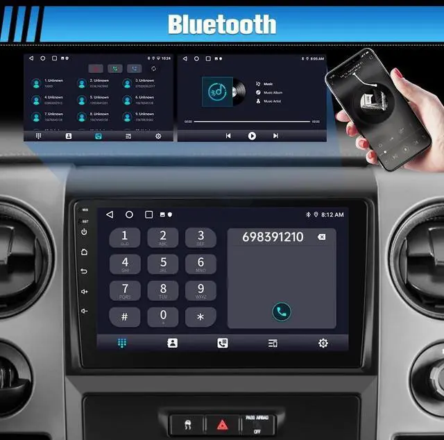 Applicable Models - (-); - (-); - (-);: - / // /- (-) ( ) ^^ AM/FM/RDS Car RadioThe Android car radio head unit with 16-band equalizer options allows to fine-tune your audio settings to perfection, customizing your music styles for optimal listening pleasure. AM/FM/RDS Radios support manual and automatic search station and store different stations. Subwoofer and Hi-Fi guarantees perfect audio quality, promising you the ultimate music enjoyment during your journeys ^^ Built-in Carplay/Android AutoThis F150 Stereo Supports CarPlay and Android Auto connect via Bluetooth, project the contents of your phone to the large screen of the host, and you can share your favorite 1080P videos, high-definition pictures, etc. Easily access your phone to make calls, navigate, play music or manage other apps via Siri controls. ^^ GPS Navigation&WIFIBuilt in GPS module and 5G Wi-Fi connectivity, support both online and offline navigation app from app market, you will not get lost again during driving with the updated data from the navigation app. ^^ SWC & Aftermarket Backup CameraRetain your vehicle's original steering wheel controls for ease of use, ensuring a safer and more convenient driving experience.