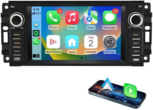 Applicable Car ModelsFor Jeep Wrangler/Unlimited 2007-2018; For Jeep Compass 2009-2016; For Jeep Patriot 2009-2016; For Jeep Grand Cherokee 2005-2011; For Jeep Liberty 2008-2011; For Jeep Commander 2008-2011; For Chrysler Sebring 2007-2010; For Town&Country 2007-2010; For Dodge Grand Caravan 2011-2014; For Dodge Charger 2008-2010; For Dodge Ram Pickup 1500/2500/3500 2009-2012. ^^ Wireless Carplay Android AutoYou can choose wired connection or wireless connection to carplay, connect to mobile phone, access mobile phone address book, mail, notification, map navigation, music, video and other information, and realize voice control.