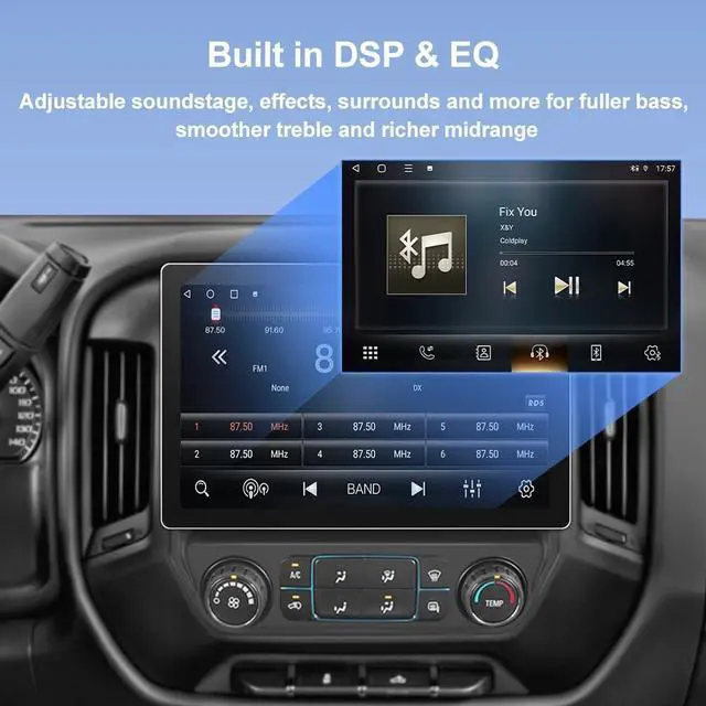 Applicable Car ModelsFor Chevy Silverado 2014-2018; For GMC Sierra 2014 2015 2016 2017 2018 ^^ 13.1 inch Grand DisplayOur car radio display's large screen provides an unparalleled driving experience with improved navigation, top-notch entertainment, superior safety, sleek aesthetics, minimized eye strain, and larger touch targets. ^^ 8-Core, Newest 4GB+64GBThe powerful 4-core processor ensures smooth performance while accessing GPS navigation or playing music, keeping you focused on the road. With 4GB RAM and 64GB of storage, the radio replacement provides ample space for all your apps, music, videos, and navigation maps.