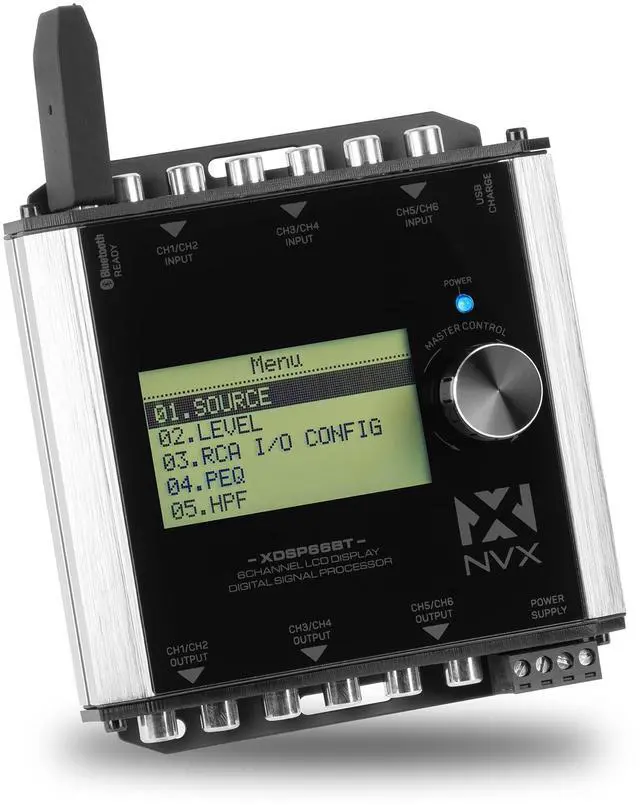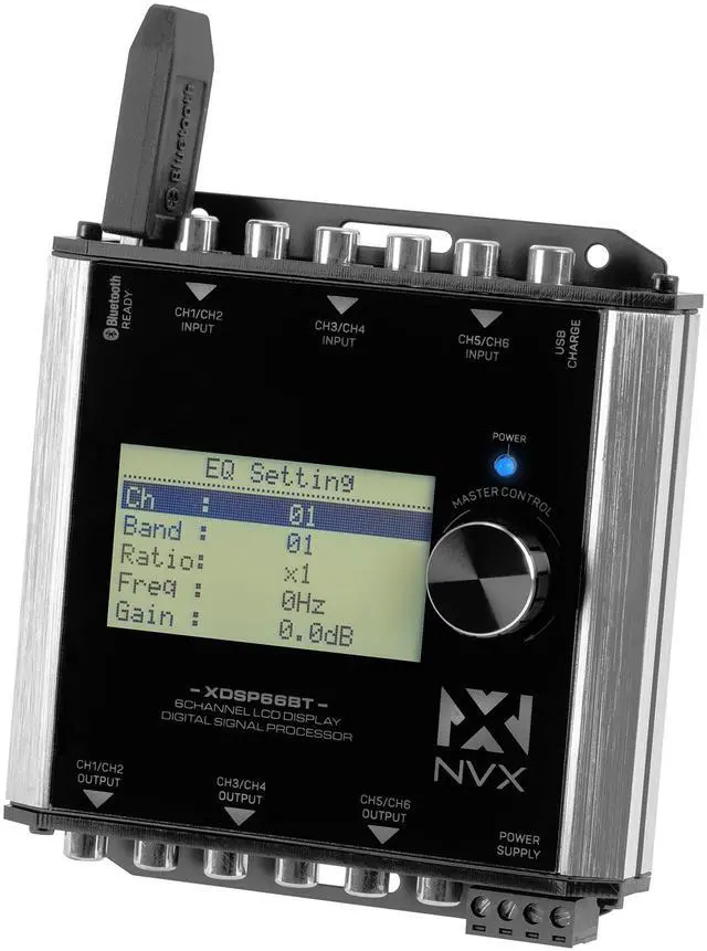 : Immerse yourself in a premium audio experience with the NVX XDSP66BT, featuring a 15 Band Parametric EQ Digital Signal Processor and a vibrant 2.75" LCD Display for unparalleled sound customization ^^: Designed to seamlessly integrate with both aftermarket and factory audio systems, this 6-channel DSP ensures optimal performance and adaptability to your specific car audio setup ^^: Enjoy powerful and clear sound with 6-channels of RCA outputs providing up to 6.5 Volts, delivering a robust audio signal to your amplifiers.