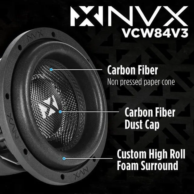 : Experience deep, impactful bass with the VCW84v3 subwoofer, featuring a max power handling of 1300 watts and RMS power of 650 watts for robust sound reproduction.