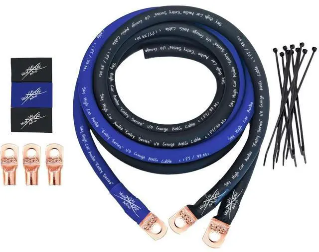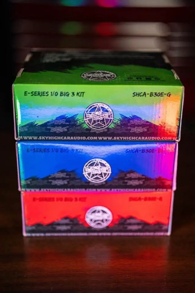 Sky High Car Audio E-Series 1/0 CCA Big 3 Upgrade Kit - Blue & Black