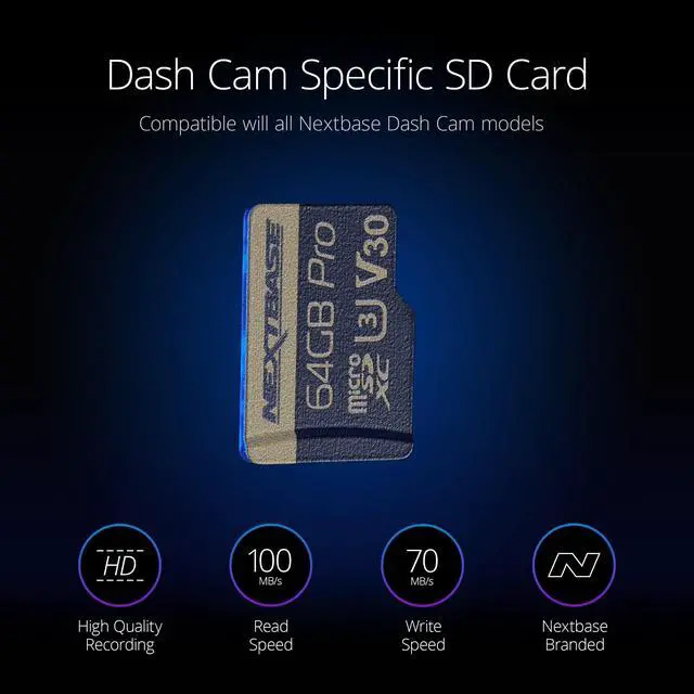 Required for Nextbase Dash Cams (Full HD 1440p or 4K) ^^ Compatible with Nextbase Rear Camera Modules ^^ 64GB capacity for 8 hours of recording ^^ High-speed performance ^^ Includes microSD card adapter for easy data transfer