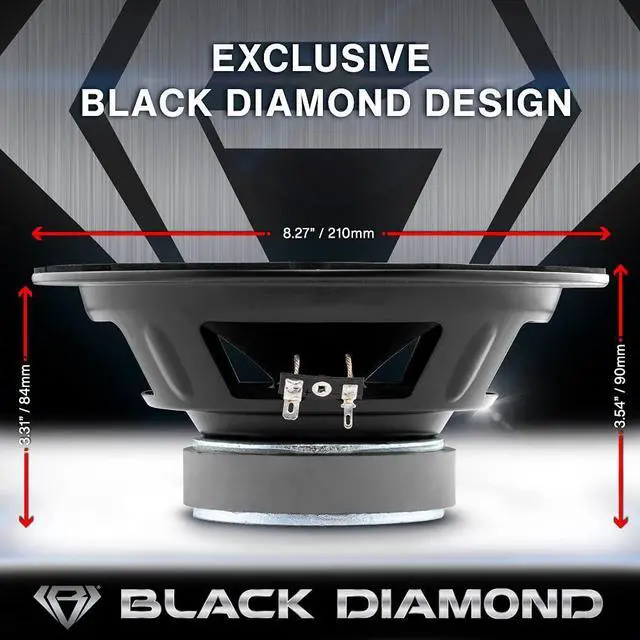 BLACK DIAMOND Dia-M 8.4B Loudspeaker - 8", Midrange with Bullet, 550W Max, 275W RMS, 4 Ohms - Premium Quality Audio Door Speakers for Car or Truck Stereo Sound System (1 Speaker)