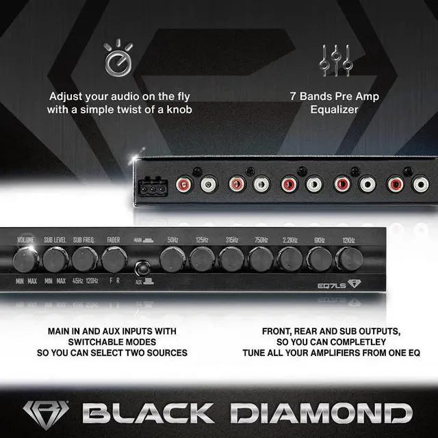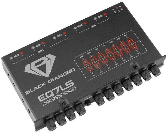 Black Diamond EQ7LS 7-Band Stereo Equalizer/Crossover Pre Amp Equalizer Car Audio EQ with Front Rear + Sub Output