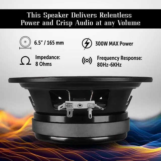 Powerful Mid-Bass Performance: 6.5 loudspeaker delivering up to 300W Max (150W RMS) for deep, punchy mid-bass that enhances your music experience ^^ High Sensitivity for