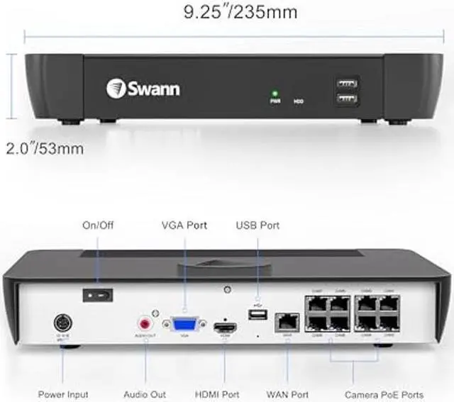 • WORK WITH SWANN IP CAMERAS: Tailored to work seamlessly with Swann's PoE 12MP/4K cameras. Get the best out of your Swann security system by connecting up to 8 cameras simultaneously with ease.