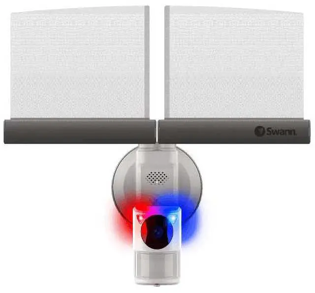 2600 LUMEN SENSOR OUTDOOR LIGHTS: Deter intruders with motion activated flood light as well as red & blue flashing lights and siren. Can also be used for additional lighting in an outdoor area and you can control the brightness from the Swann App