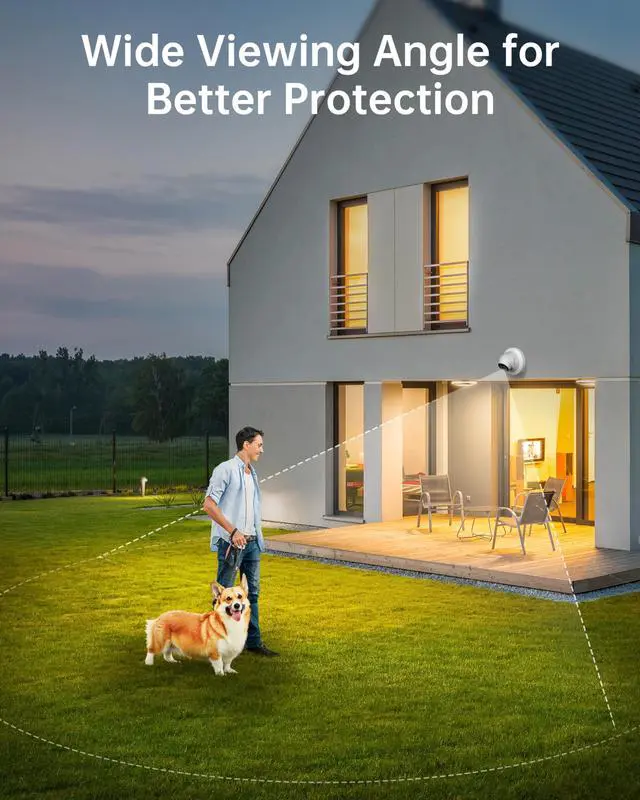 WIDE VIEWING ANGLE: This camera has a wide 102-degree field of view to cover broad areas around your home or business so that you can have fewer cameras on your property; this helps bring down the cost of home security ^^ RELIABLE WEATHERPROOF DESIGN AND WIRED PROTECTION FOR EASY INSTALLATION: Each outdoor security camera is tested to withstand any weather; Speak to see via Hey Google & Alexa ^^ 1