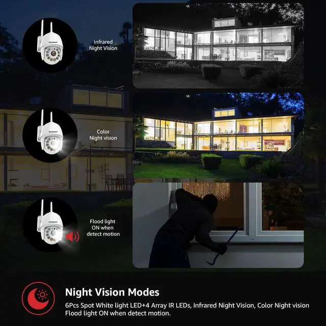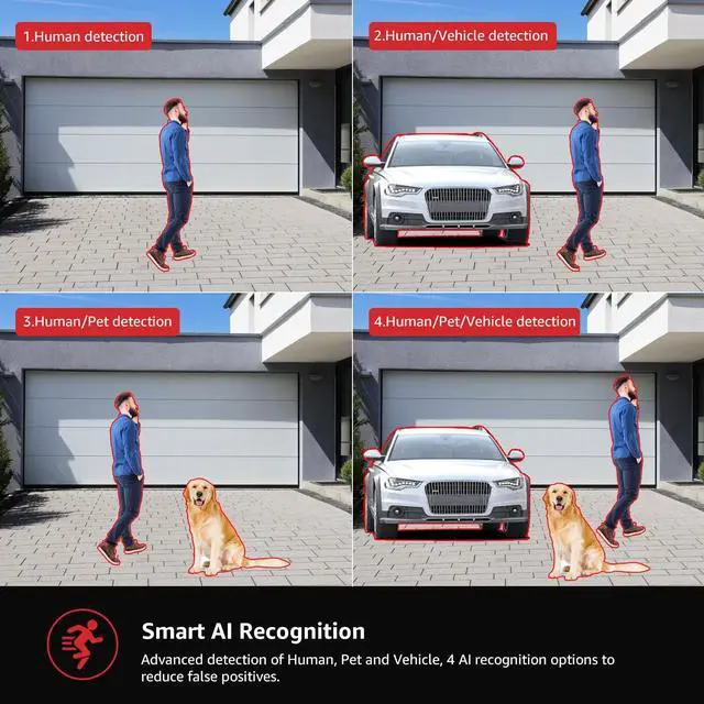 4K/8MP HD Resolution & Pan TiltThe Security camera built-in 4K/8MP sensitive CMOS sensor, with ultra-high quality resolution of 38402160, with Ultra bright infrared or white light, 350 rotates horizontally and vertically 110to fully cover your house. Use 12V power supply (Included), Both suitable for 2.4GH z & 5GHz Wireless WIFI Router. ^^ AI Human/Pet/Vehicle detection & 2 way Talk With AI intelligent motion detection, this 4K/8MP security camera can distinguish between people and Pet/Vehicle, reducing 95% false alarms caused by insects, flys, rain, leaves, It can send alerts to your mobile phone.