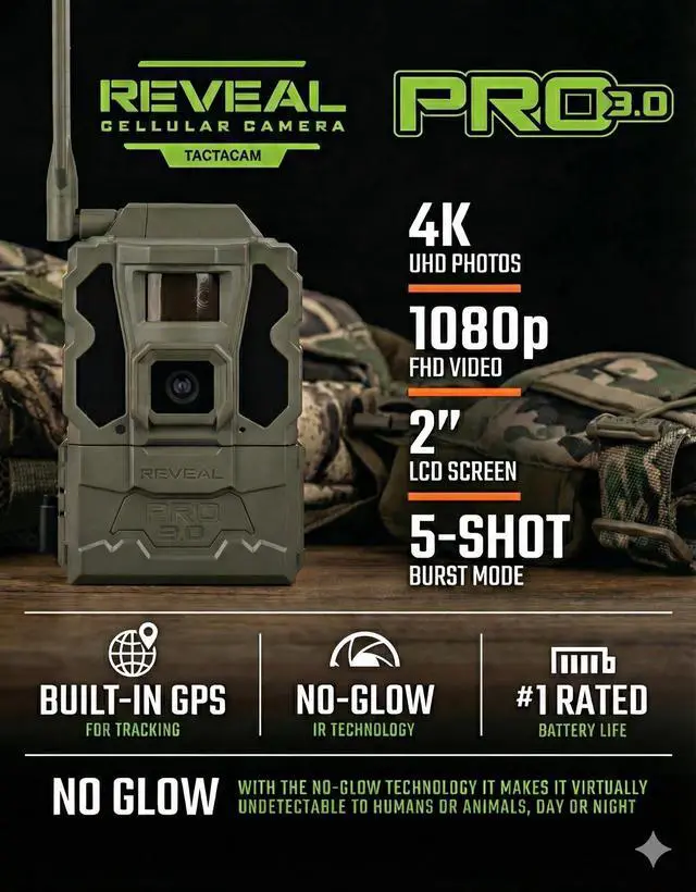 Its user-friendly interface ensures quick activation and step by step configuration, so you can start capturing images and videos right away. ^^ IMPROVED IMAGE SENSOR - The Reveal Pro 3.0 comes with No-Glow IR Technology and 2" LCD Screen making it virtually undetectable to Humans or Animals, Day or Night. ^^ USER-FRIENDLY APP - Tactacam REVEAL cellular camera includes a preactivated SIM card that will connect to your mobile device using the REVEAL app. After activation and cellular connection, the REVEAL camera will deliver photos from your hunt location directly to your mobile device.
