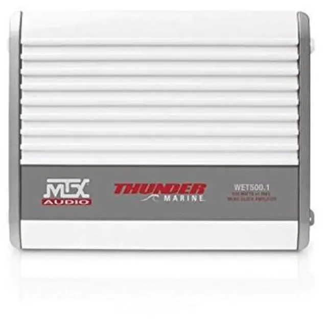 WET Series amplifiers from MTX Audio are designed to deliver all the power your system needs whether they are being used on a boat or off-road vehcile. The WET 500.1 is a mono block subwoofer amplifier with an incredibly small chassis. This amp is capable of producing up to 500W RMS and features 2 stability, making it the perfect choice to run two of the WET series subwoofers.