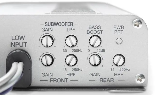 • 12dB/Oct. Low/High Pass Electronic Crossover. Variable 35-250Hz (SUB) / 15-250Hz (FR/RR)