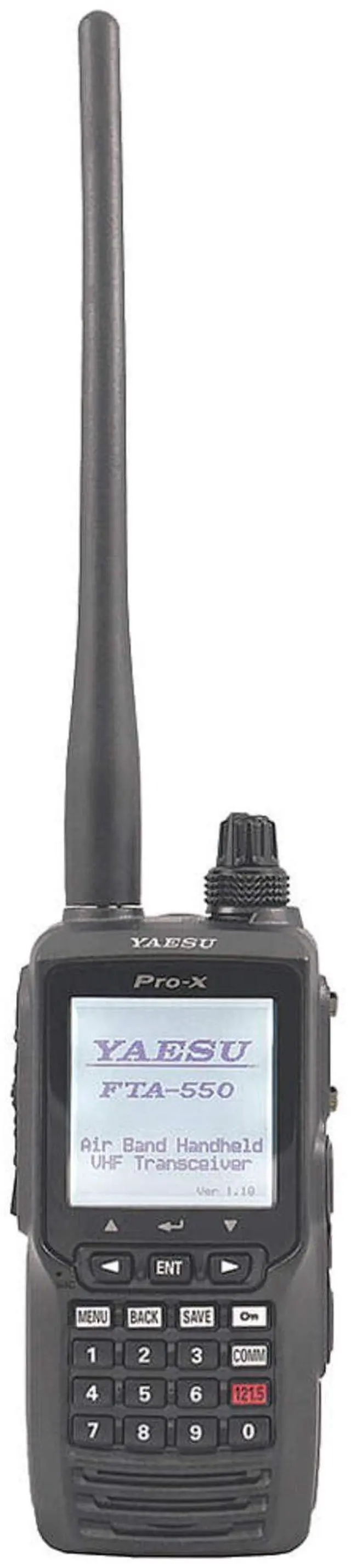 The YAESU FTA-550 is packed with features, yet very affordable. Boasting an oversize full dot matrix LCD display, the FTA-550 Airband Transceiver provides full communication on the Aircraft communications Band and additionally provides VOR and ILS navigation features on the "NAV" band. The FTA-550 includes NOAA weather band monitoring and the capability of programming up to 200 memory channels with a quick and easy channel recall feature. The brand new easy to operate menu system is icon driven making it simple to navigate through all of the powerful features this transceiver has to offer.