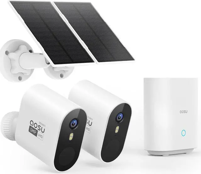 AOSU 5MP SolarCam Max System 2-Cam-Kit + 2K Indoor Camera 2Pack (Indoor Camera Doesn't Connect to Max's Homebase)