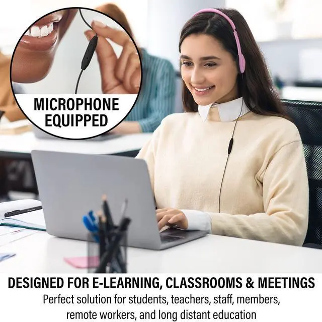 Pack of 20 Bulk Headphones, with each headset individually packaged. Includes 10 Colors; Blue, Pink, Red, Green, Purple, Orange, Yellow, Gray, Black and White. Our design is kid-friendly and great for all ages. Suitable for airplane travel, school classrooms, library, museums, learning and standardized testing experiences for all ages.