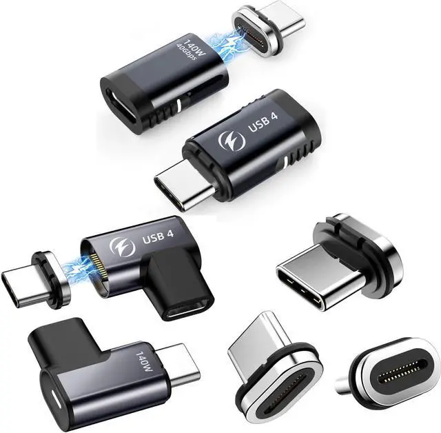 HanCenDa 140W USB C Magnetic Adapter 4Pack, 24Pins USB C 90 Degree Adapter with USB4 40/20Gbps 8K 60Hz Video for Thunderbolt 3 MacBook Pro/Air, Tablet, Laptop, iPhone 15/15 Pro/15 Max/15 Pro Max