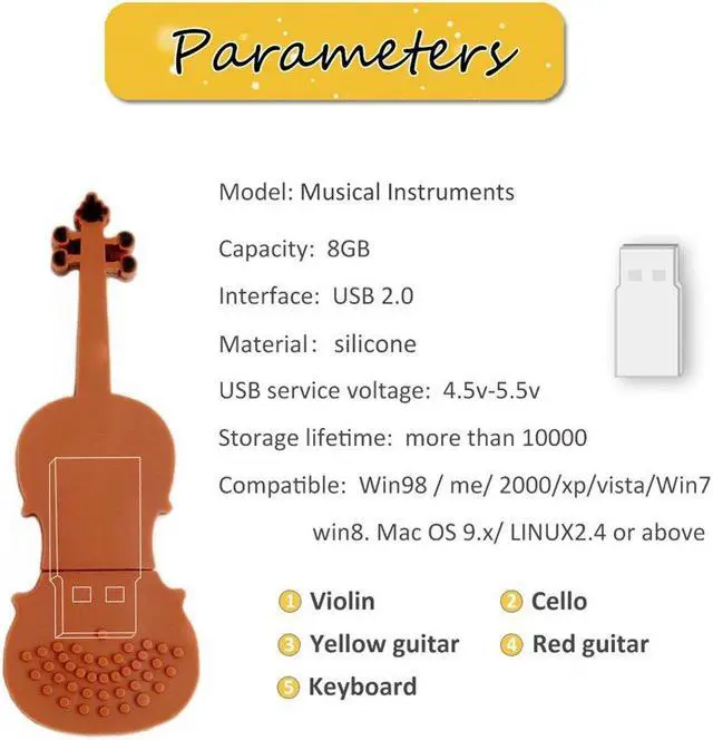 Cute USB Drive: 5x 32GB Musical instruments USB Flash Drives. Use A-class chip, can be erased repeatedly for 100,0000 times.Durable data storage. Storage, Shock proof and electromagnetic proof