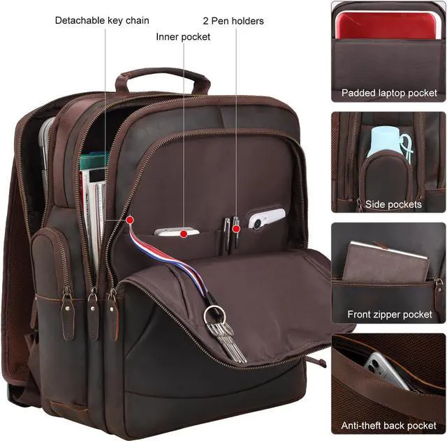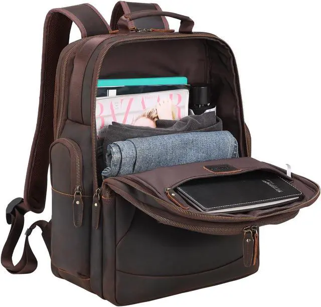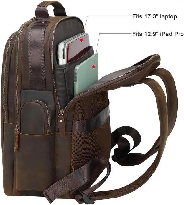 TIDING Full Grain Leather 17.3 Inch Laptop Backpack for Men Large Capacity Travel Weekender Camping Daypack Rucksack