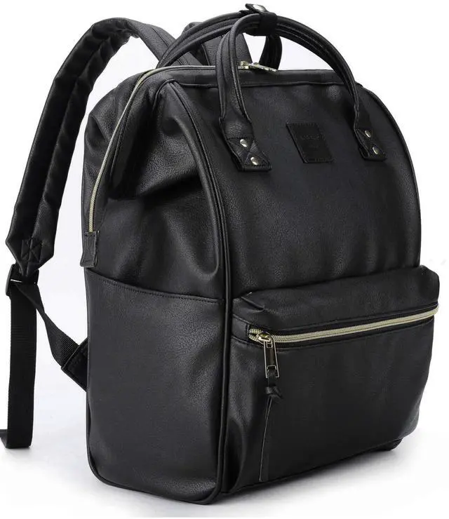 Kah&Kee Leather Backpack for Women and Men 16-inch Laptop Bag ^^ Teacher Professional, Diaper Bag Backpack, Ideal for Work, School, Nursing, College & Travel (Black, Large)