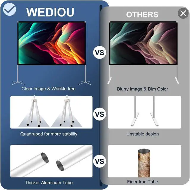 Portability - Weighing in at a lightweight design and accompanied by a convenient carry bag, this projector screen is effortless to transport and suitable for travel, backyard, both indoor and outdoor use