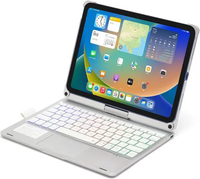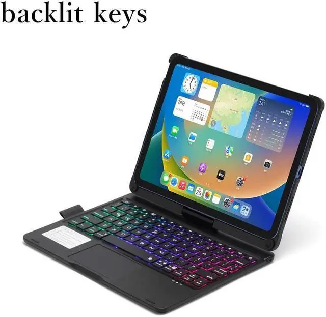 360 Rotating The iPad 10 2022 touchpad Keyboard Case can rotate by360 degree , has laptop-like well-spaced keys, backlit keys, shortcut keys and a builtin trackpad . High performance 360 degree rotary backlit touch keyboard makes your tablet works better than a laptop