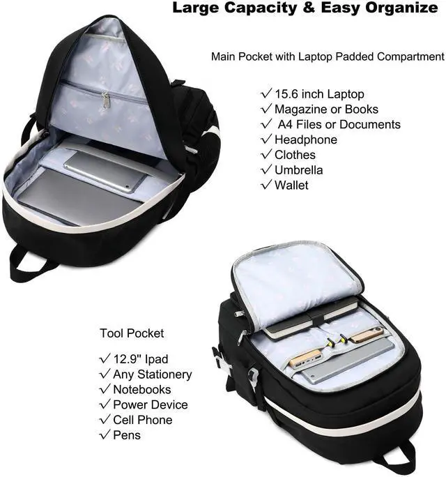 Large Size & Gift: The size of back pack is 12.2"x5.9"x17.8"(L*W*H), Weight:1.65 LB. The laptop bag with padded compartment sleeve fit for 13.3,15.6 ,16.1 inch tablet. This bag sacks also along with fluffy ball key pendant and personality badge as gift makes the bags more fashionable and unique