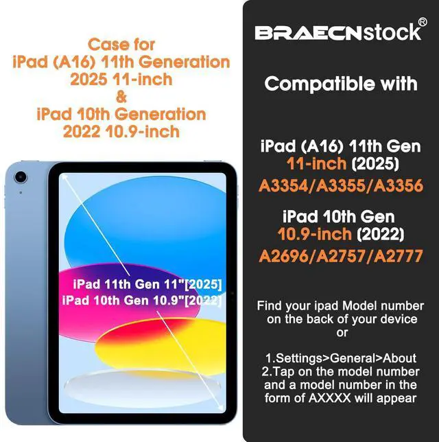 Perfect Compatibility: Shockproof Case for iPad (A16) 11th Generation 11 inch (2025, models A3354/A3355/A3356) & iPad 10th Generation 10.9 inch(2022, models A2696/A2757/A2777) . Not compatible with other iPad models. Confirm your device before purchase. NOTE: Apple Pencil not included