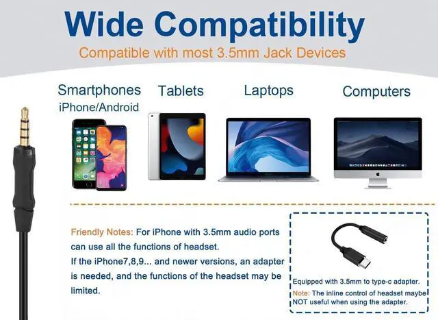 3.5MM Phone HeadsetCompatible with iPhone, Samsung, Smartphones and any audio device with a 3.5mm jack, For iPhone 7/8/X/XS/11/12/13/14 or later,Lightning to3.5mm Adapter is needed. (Package does not include adapter, must be purchased from an Apple Retail Store)