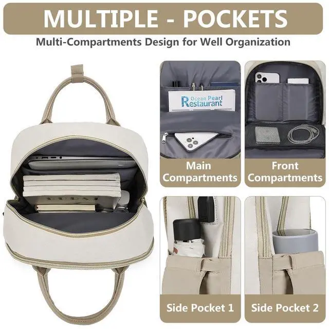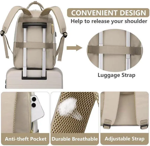 Backpack for Women Laptop Bag: Work Travel Backpacks Fits 17 inch Computer Waterproof College Bookbag with USB Charger Anti-theft Business Casual Backpack Purse for Nurse Teacher Beige Khaki