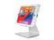 3.Strong and stylish aluminum kiosk, predrilled holes in base for secure desktop or installation. lock & Key keeps tablets secured inside the fixed frame, the locking protects tablet from theft.