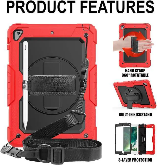 [360°Rotatable Kickstand & Hand Strap] 360°Rotatable Kickstand offers multi-angle stands for enjoying the most comfortable typing and viewing angles. The 360°Rotatable and Adjustable Hand Strap makes you hold or use your device easier in all directions. Also designed with a Pen Holder to grab your Apple Pen whenever you want, easy to carry your Apple pen with your device (Apple Pencil is NOT included)