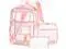 Dimensions for clear backpack : 5.9"W x 17.7"H x 11.8"L; Clear tote handbag: 4.5"W x 9.1"H x 8.7"L; Clear Pouch:2.8"W x 5.2"H x9.1"L