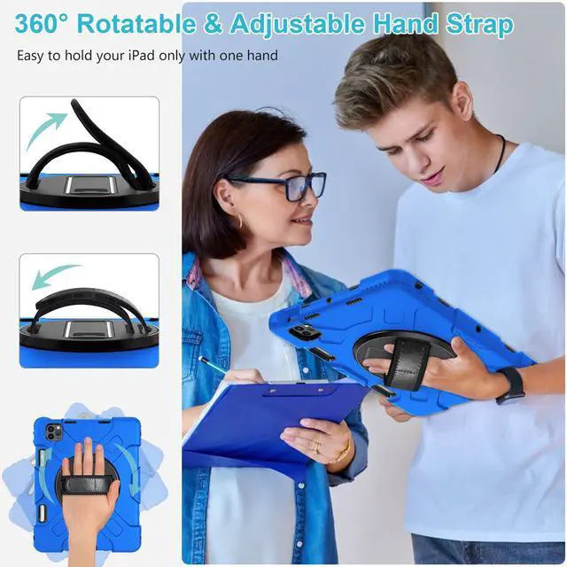 Case for iPad Pro 11 Inch 2022/2021/ 2020/2018: Silicone Cover for iPad 11 Inch 4th/ 3rd/ 2nd/ 1st/ Generation with Screen Protector- Stand- Handle- Shoulder Strap- Pencil Holder- Blue
