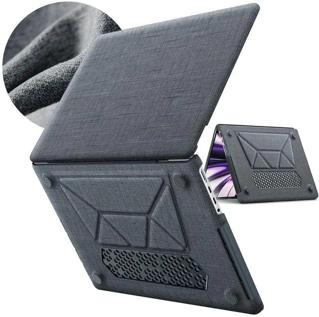 KAIJIAbox Compatible for MacBook Pro 14 inch Case 2025 2024-2021 M4 M3 M2 M1 Pro/Max A3112 A3185 A3401 A2918 A2992 A2779 A2442, Foldable Stand Woven Fabric Anti-Fingerprint Protective Case, Grey