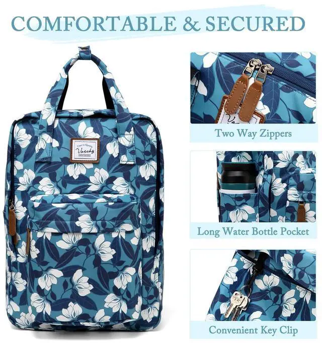 VINTAGE DESIGN:The vaschy laptop backpack is made of high quality fabric,which is soft and durable.The vintage backpack features a streamlined design with adjustable shoulder straps for a better overall fit. Exquisite and unique floral patterns are eye-catching.The two top handles on the pack can be used for hand-carrying, making it more convenient and easy to carry.