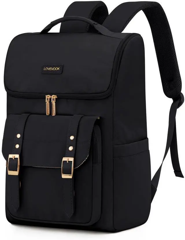 LOVEVOOK Travel Laptop Backpack for Women,15.6 Inch Computer Backpack for School,Teacher Nurse Vintage Bookbag with U-Shaped Opening for Work College,Black