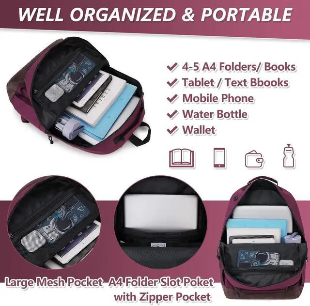 Water Resistant : This school bag is made of water-resistant polyester. It can completely protect the documents, books and computers in the college backpack from being damaged by water seepage.No More worrying about getting wet items in the rain.
