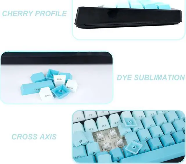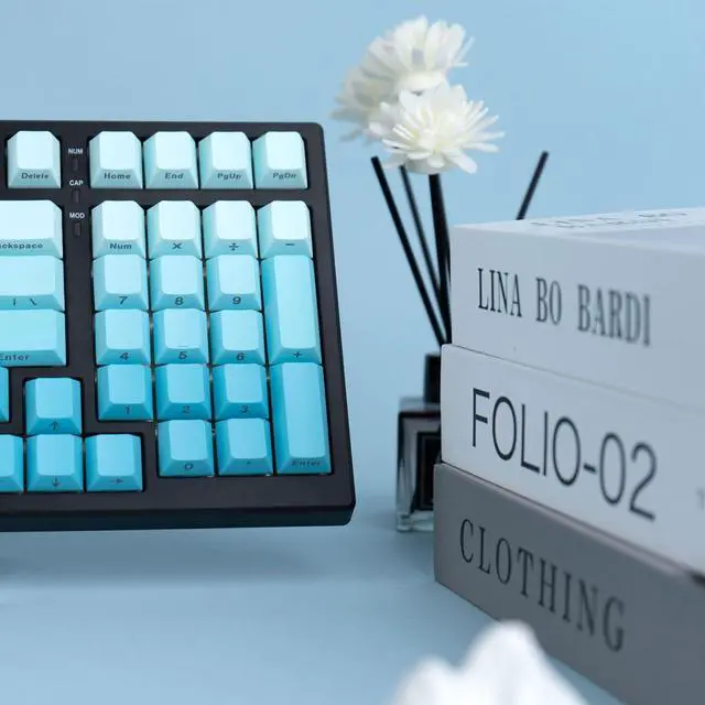 3. Cherry KeycapsCherry profile gradient cyan keycaps are ergonomic, comfortable to use, and not too tired for long time use.