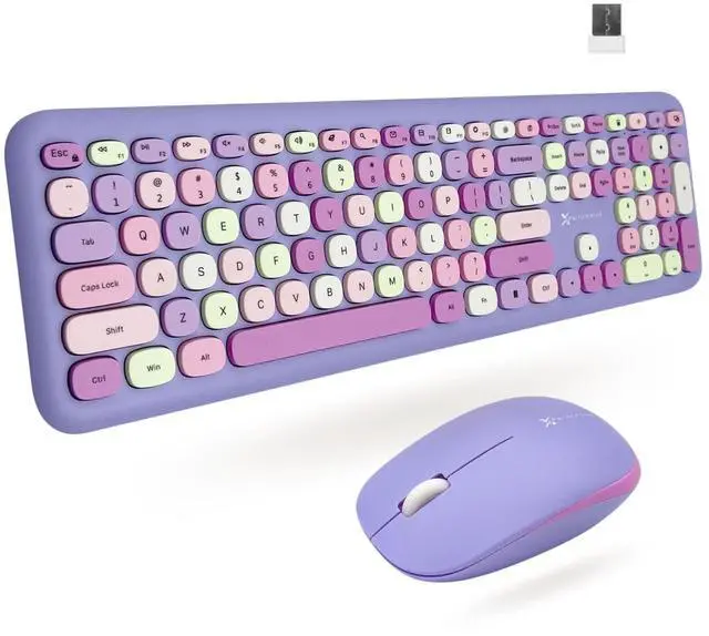 X9 Purple Wireless Keyboard and Mouse Combo - 2.4G Full Size Colorful Keyboard and Mouse Wireless - Cute and Aesthetic Retro Typewriter Combo for PC Computer Desktop and Laptop.
